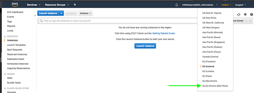 Inicié sesión en la consola EC2 y seleccioné la región São Paulo (sa-este-1).