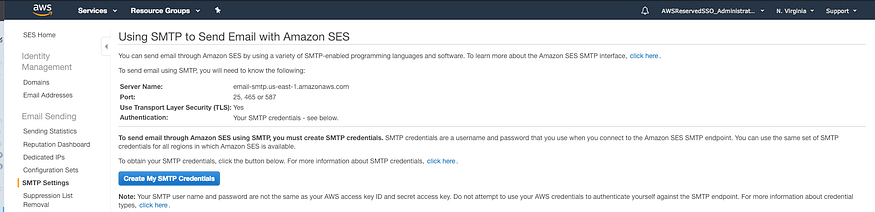 Anfitrión: utilicé el servidor SMTP que figura en la página de configuración de SMTP de SES , con